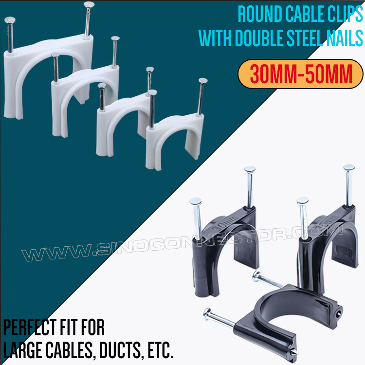 Τα κυκλικά κλιπ καλωδίων περιλαμβάνουν καρφιά από χάλυβα μεσαίου άνθρακα (ή υψηλής περιεκτικότητας σε άνθρακα) εντός του εξωτερικού περιβλήματος. Τα κλιπ καλωδίων με καρφιά χρησιμοποιούνται πολύ ευρέως τόσο σε επαγγελματικές όσο και σε εργασίες DIY, από την τακτοποίηση του ethernet και των σωλήνων μέχρι τα καλώδια λειτουργίας για εξωτερικό φωτισμό ή τροφοδοσία. Διατίθενται σε στρογγυλά ή επίπεδα σχέδια με πολλά μεγέθη, σχήματα και υλικά, γεγονός που αυξάνει τη δημοτικότητά τους.