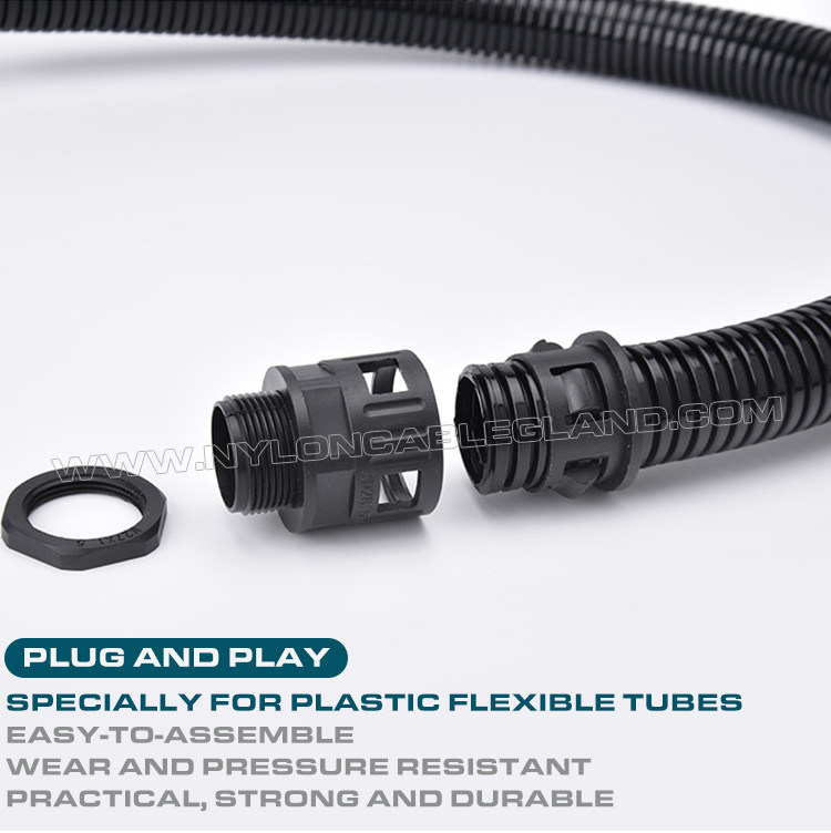 M12-M63 μετρικοί σύνδεσμοι αγωγών, ευθύγραμμων αγωγών πλαστικοί στυπιοθλίπτες καλωδίων για εύκαμπτους σωλήνες AD10-AD54.5 είναι ένα είδος συσκευής σύνδεσης που χρησιμοποιείται ευρέως στην ηλεκτρική ενέργεια,συστήματα παροχής υγρών και αερίων. Έχει υψηλές επιδόσεις σφράγισης και χρησιμοποιείται ειδικά για τη σύνδεση κυματοειδών σωλήνων. Μπορεί να διατηρήσει ασφαλείς και αξιόπιστες συνδέσεις κατά τη μεταφορά υψηλών θερμοκρασιών,Υψηλής πίεσης και διαβρωτικά υγρά ή αέρια.